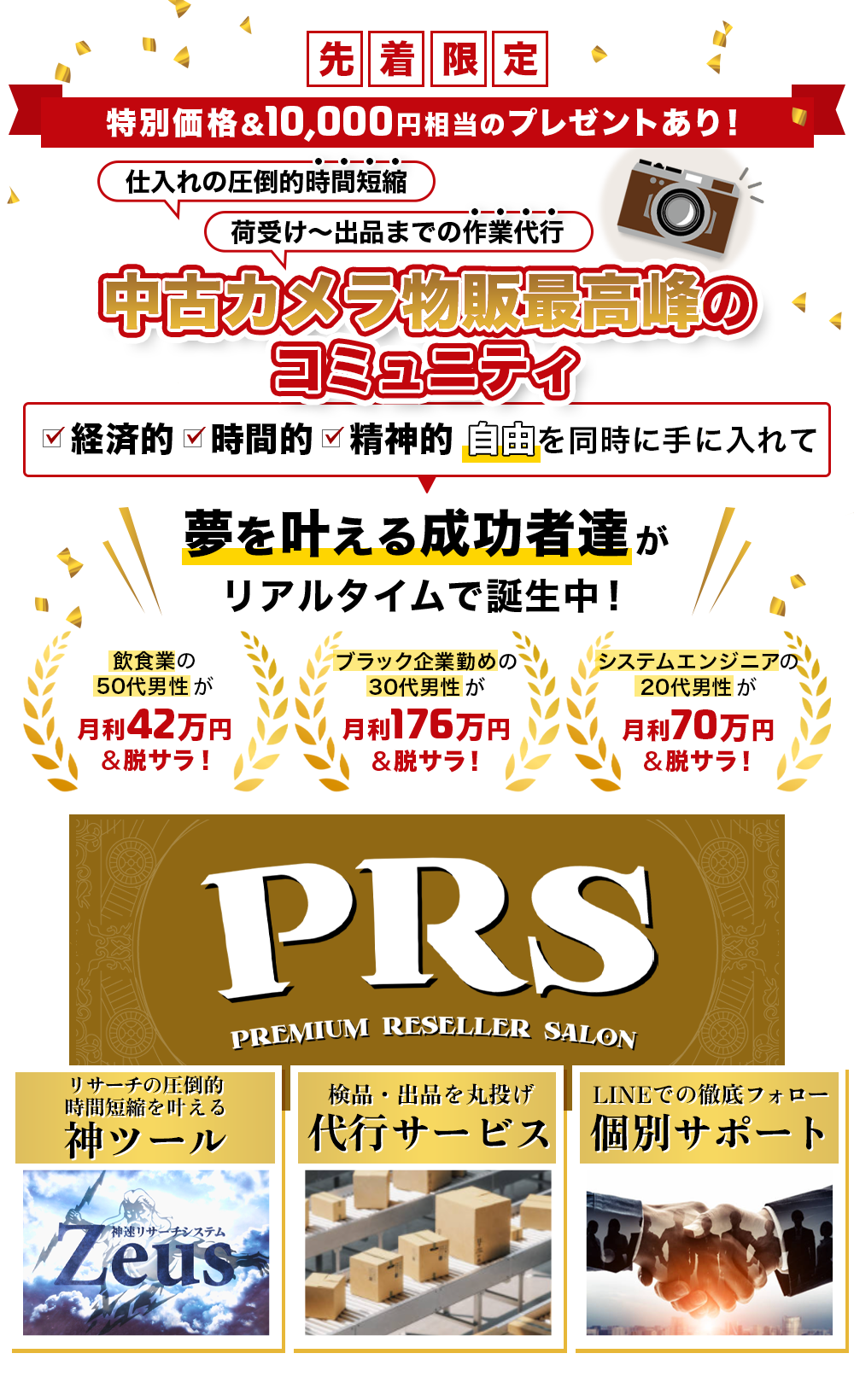たとえ今、物販やカメラの知識が一切なくても、過去に他のビジネスで挫折した経験があるからと言っても、何の問題もなく学べるのでご安心ください。